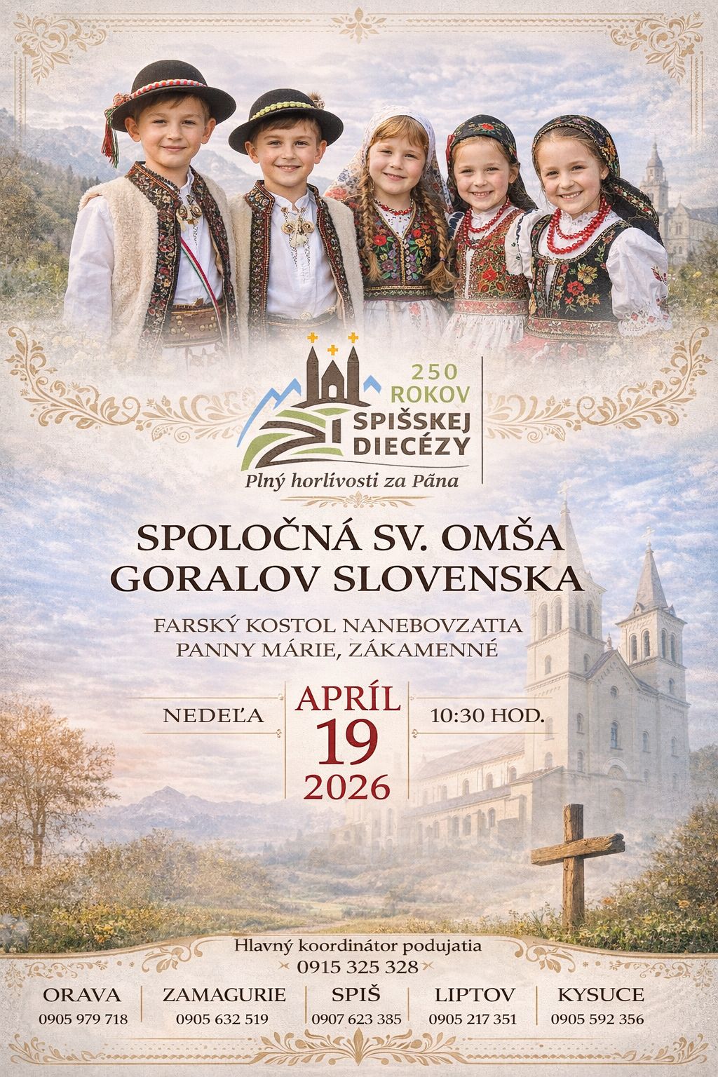 Aj naša obec a farnosť sa v nedeľu, 19. 4. 2026 zúčastnila sv. omše vo farskom kostole Kostol Nanebovzatia Panny Márie v Zákamennom, kde sa stretli Gorali z celého Slovenska na slávnostnej svätej omši pri príležitosti 250. výročia Spišskej diecézy. Záštitu nad podujatím prevzal spišský diecézny biskup František Trstenský, ktorý bol zároveň hlavným celebrantom.