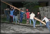 vyzdobili jeho vrchol a potom bolo treba veľa mocných rúk na jeho postavenie. Potom dievčatá prichystali malé pohostenie