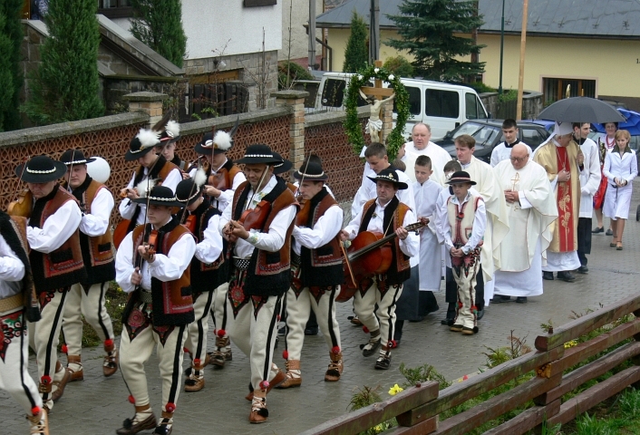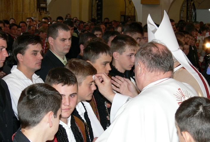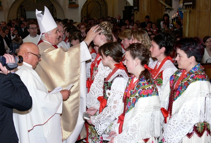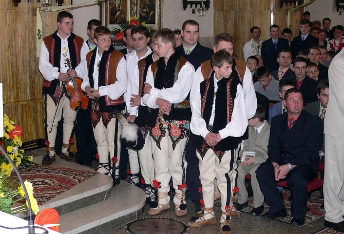 Dňa 7. mája 2006 sa konala v Hladovke sviatosť birmovania, ktorú udeľoval spišský pomocný biskup mons. Andrej Imrich. Slávnostná svätá omša začala o 10.00 hod. a pri takýchto príležitostiach sa hlavne mládež vyoblieka do prekrásnych krojov a aj takto sa chce pričiniť o to, aby sa zachovalo čo najviac z dedičstva našich predkov. V krojoch sme opäť mohli vidieť nielen dievčatá, ale aj mládencov a zišiel sa aj celý tucet muzikantov z Hladovky a Suchej Hory. Počas sv. omše sme mali možnosť počúvať nielen liturgické spevy, ale aj goralskú muziku i mládežnícky spevokol. Goralská muzika hrala samozrejme aj na čele slávnostného sprievodu do kostola a z kostola a ešte dlho vyhrávala aj po skončení slávnosti pred farou. |
