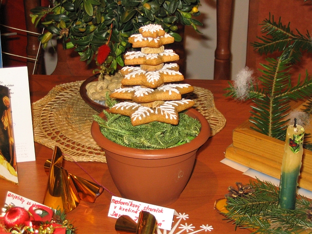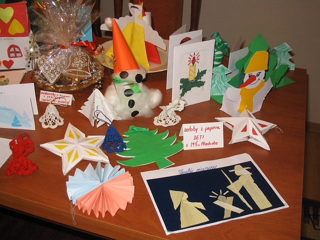 V sobotu a v nedežu 10. a 11. decembra 2005 ste si mohli v zasadačke obecného úradu pozrie malú výstavku medovníčkov, betlehemov a vianočných ozdôb, ktoré doniesli občania obce. Niektoré betlehemy boli síce kúpené, ale medovníčky a vianočné ozdoby boli výsledkom práce naich obyvatežov. Mohli sme tu vidie práce tých najmeních - iakov materskej koly, ale aj mamičiek, babičiek, mládencov i dievčat. |