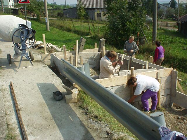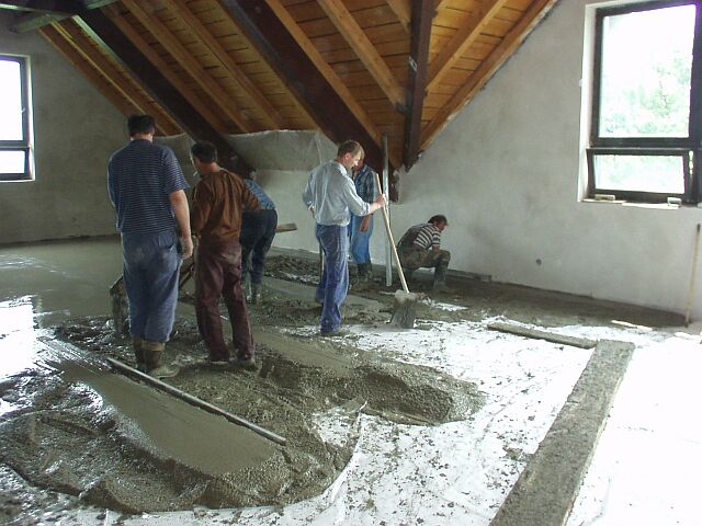| Betonárske práce - leto 2002 | V piatok to ešte vyzeralo takto | robili sa predposledné nutné úpravy ... | čistilo sa, umývalo... |