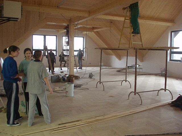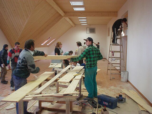 V tomto roku sa obecný úrad rozhodol dokončiť podkrovie Základnej školy a v týchto priestoroch dokončiť spoločenskú miestnosť, ktorá by nahradila už starú, takmer nepožívateľnú sálu kultúrneho domu. Ako to na stavbe vyzeralo, ako vyzerala pred dokončením a pár záberov z prvej akcie ešte pred oficiálnym otvorením - zo stretnutia s dôchodcami máte možnosť vidieť na nasledujúcich obrázkoch. Treba podotknúť, že na dokončovacích prácach sa vo veľkej miere podieľali práve občania našej obce, ale aj žiaci našej ZŠ. |