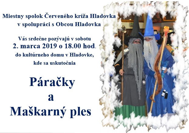 Po páračkách o 20:30 hod. bude nasledovať Maškarný ples. Zraz masiek je v čase od 20:00 do 20:30 hodiny. Vstup pre všetkých dospelých je voľný a každá maska bude odmenená.