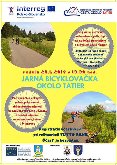 Pozývame všetkých milovníkov na nedeľné popoludnie s bicyklom okolo Tatier. Zúčastniť sa môže každý, kto sa chce previezť na bicykli po cyklotrase Trstená – Suchá Hora – Nowy Targ.