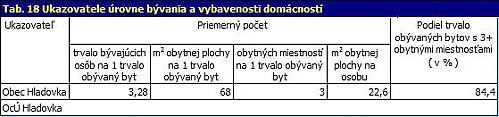 Ukazovatele úrovne bývania a vybavenosti boli nasledovné: na jeden byt v obci v priemere pripadalo 3,28 osôb, pričom na jednu osobu pripadlo v priemere 33,2 m2.