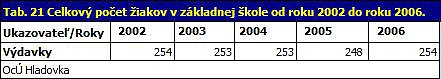 V školskom roku 2005/2006 navštevovalo ZŠ v Hladovke 241 žiakov. Prvý stupeň navštevovalo 62 žiakov a druhý 187 žiakov. Z celkového počtu je 140 chlapcov a 109 dievčat. Na škole je činných niekoľko záujmových krúžkov ako napr.: Futbalový krúžok, Stolný tenis, Súbor Goral, Turistický krúžok, Športové hry na I. st., Tvorivé dielne na I. st., Dramatický krúžok na I. st., Varenie, Šikovné ruky, Angličtina na I. st., Hudobný krúžok, Školský klub – krúžok tvorivosti a žiaci aj učitelia sa počas celého školského roka zapájajú do mnohých ďalších školských i mimoškolských aktivít a projektov, napr. teleprojekt "Zaspievajme si", a pod.