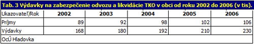 V sledovanom období bol vývoj príjmov a výdavkov z odvozu a likvidácie komunálneho odpadu rovnomerný. Od roku 2002 do roku 2006 stúpol objem príjmov v tejto oblasti o 19,1 %. V prípade výdavkov to bolo 36,9 %. V prípade, že sa doterajší vývoj zachová, nemožno predpokladať dosiahnutie ekonomickej rentability z poskytovania uvedenej služby.